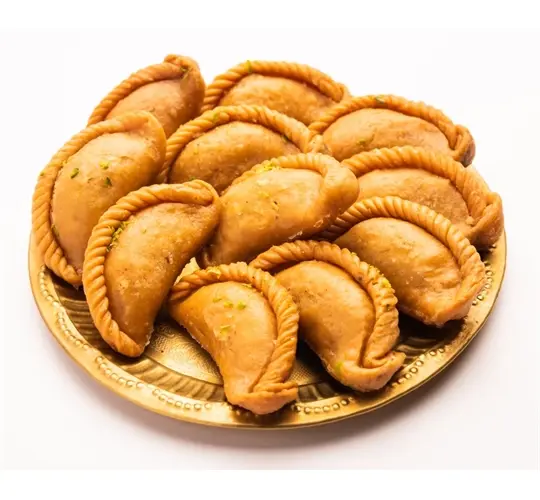 Desi Gujiya is a traditional Indian sweet dumpling, widely enjoyed during festivals such as Holi, Diwali, and Teej. Originating from North India, especially Uttar Pradesh, Bihar, and Rajasthan, Gujiya is a festive delicacy filled with rich, sweet ingredients and deep-fried to perfection.